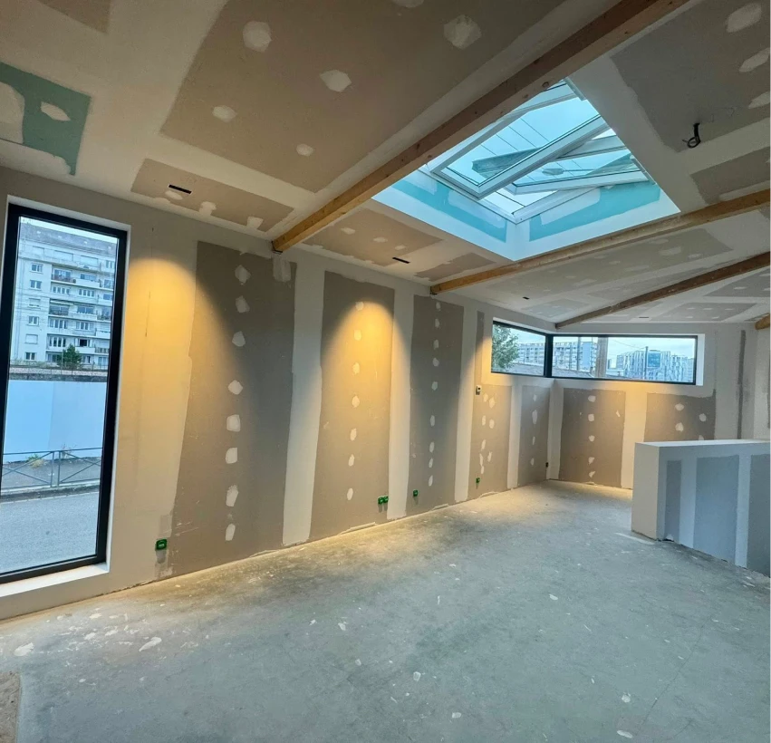 Notre expertise englobe l'installation de plaque de plâtre, le staff et les finitions soignées de jointoyeur, garantissant des surfaces prêtes à peindre.